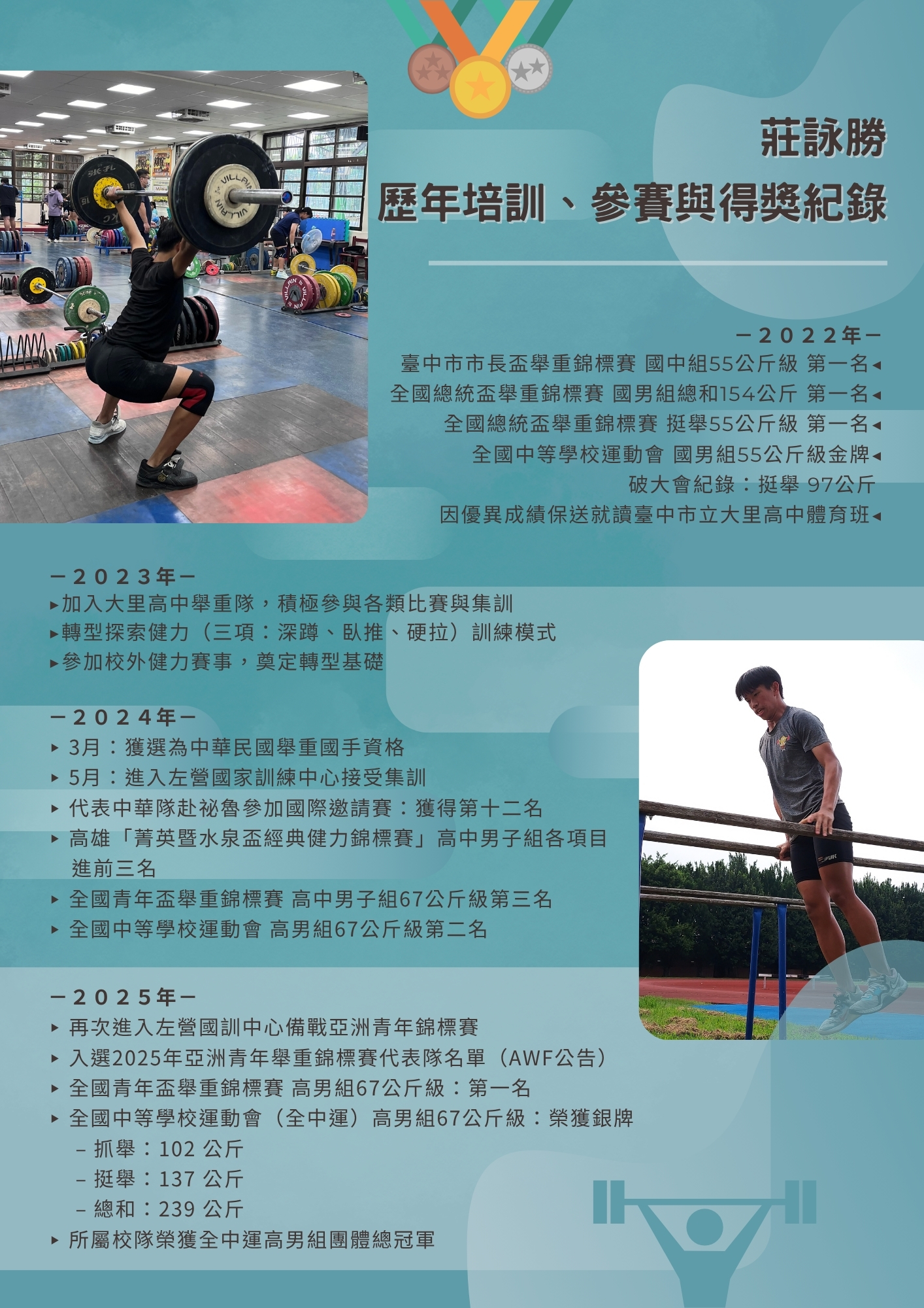 如今的詠勝,不僅是學校與國家的舉重代表,更是家裡的希望與驕傲。從過去參加中心活動時的皮蛋模樣,到如今站上國際體壇的專業身影,詠勝用堅持與努力,一步步實現夢想,朝著金牌之路勇敢前行。