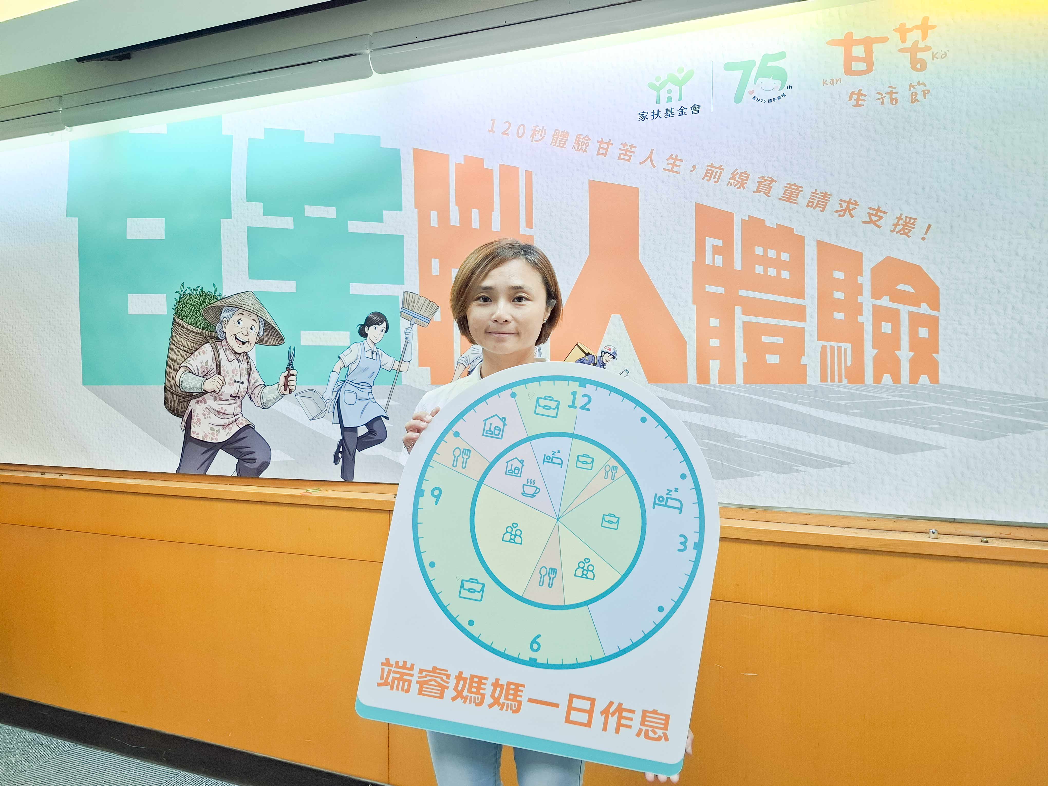 家扶基金會周大堯執行長表示:「曾有弱勢家長被貼上『不夠努力』的標籤。唯有走進他們的生活,才會發現不是不願意,而是缺乏支援。無法穩定工作的家長,奔波於多份兼職,不停在困境中打轉。家扶期盼攜手大家力量為弱勢家長賦能,同時藉由教育、能力建構,為下一代鋪路,讓孩子不重蹈貧窮覆轍!」甘苦生活節以「甘苦職人體驗」為主題,推出線上小遊戲並串聯桃園、新竹、南台中、北台中、北台南、北高雄六地家扶中心,以弱勢家庭常見職業設計體驗情境,如組裝達人、竹林職人、抓龍(眼)高手等,讓大小朋友深入認識弱勢家長工作樣態,以及高工時、低收入的工作困境。改變從認識開始、助貧從小事著手,家扶「無窮世代計畫」,邀請社會大眾支持推動生活照顧、急難救助、教育補助與能力建構方案,幫助弱勢家庭與兒少看見改變的未來!