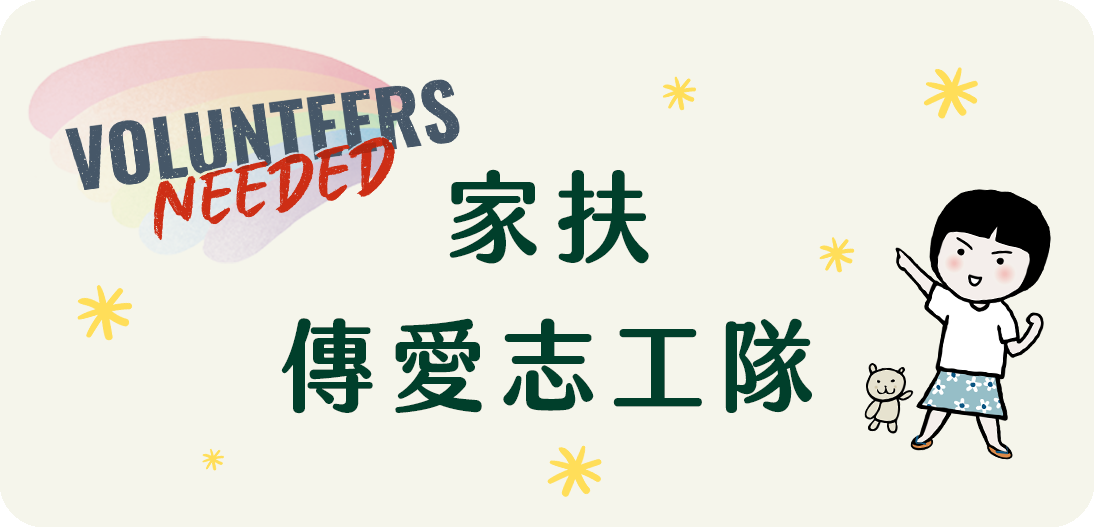 志工們透過自己的服務,學習新技能、拓展人脈、提升自我價值,把愛傳出去,一起加入家扶傳愛志工隊 — 讓希望和改變發生,打造美好世代。